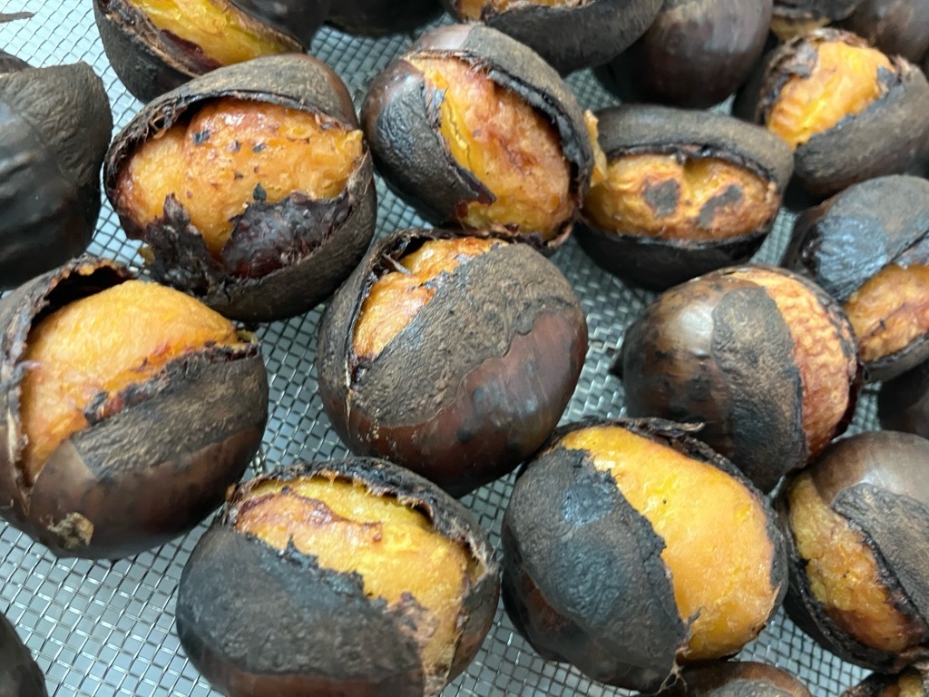 私たちは、栗の選び方から仕込みまで、すべての工程を自分たちの手で行っています。収穫した栗は、ひと粒ひと粒手に取り、見た目・重さ・香りを確かめながら丁寧に選別しています。